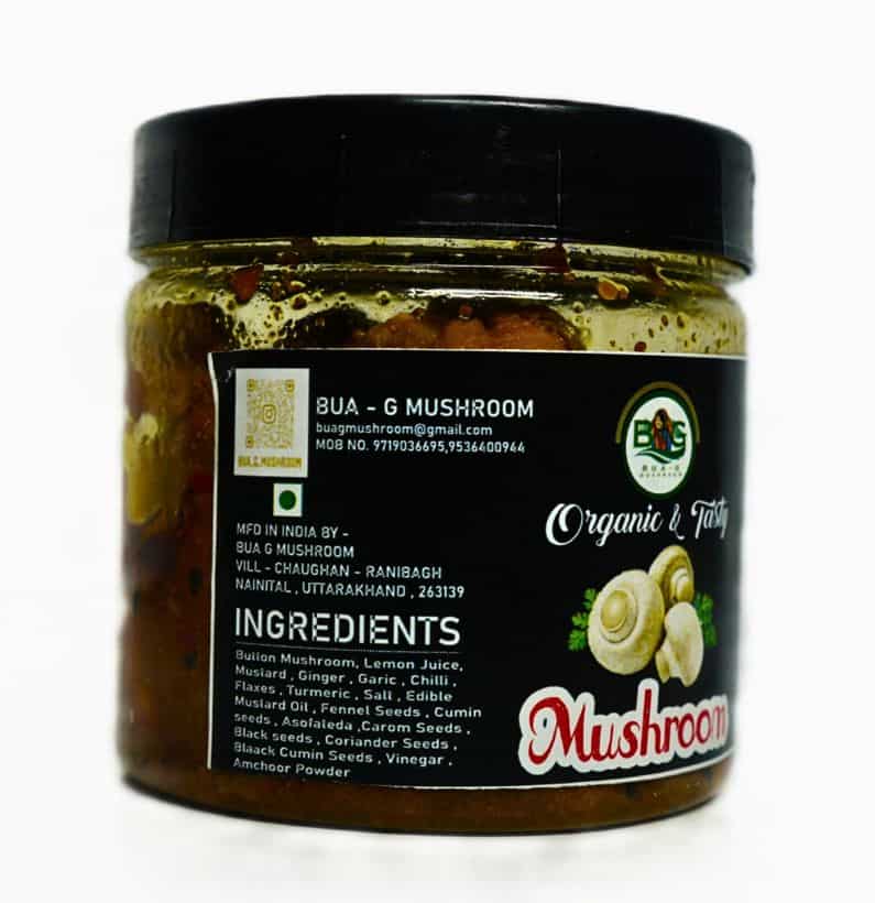 Delight in the unique blend of flavors with Bua-G Mushroom’s homemade Button Mushroom Pickle, crafted using organic ingredients from Uttarakhand.