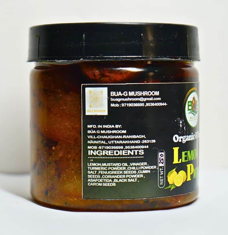 Delight in the unique blend of flavors with Bua-G Mushroom's homemade Button Mushroom Pickle, crafted using organic ingredients from Uttarakhand.